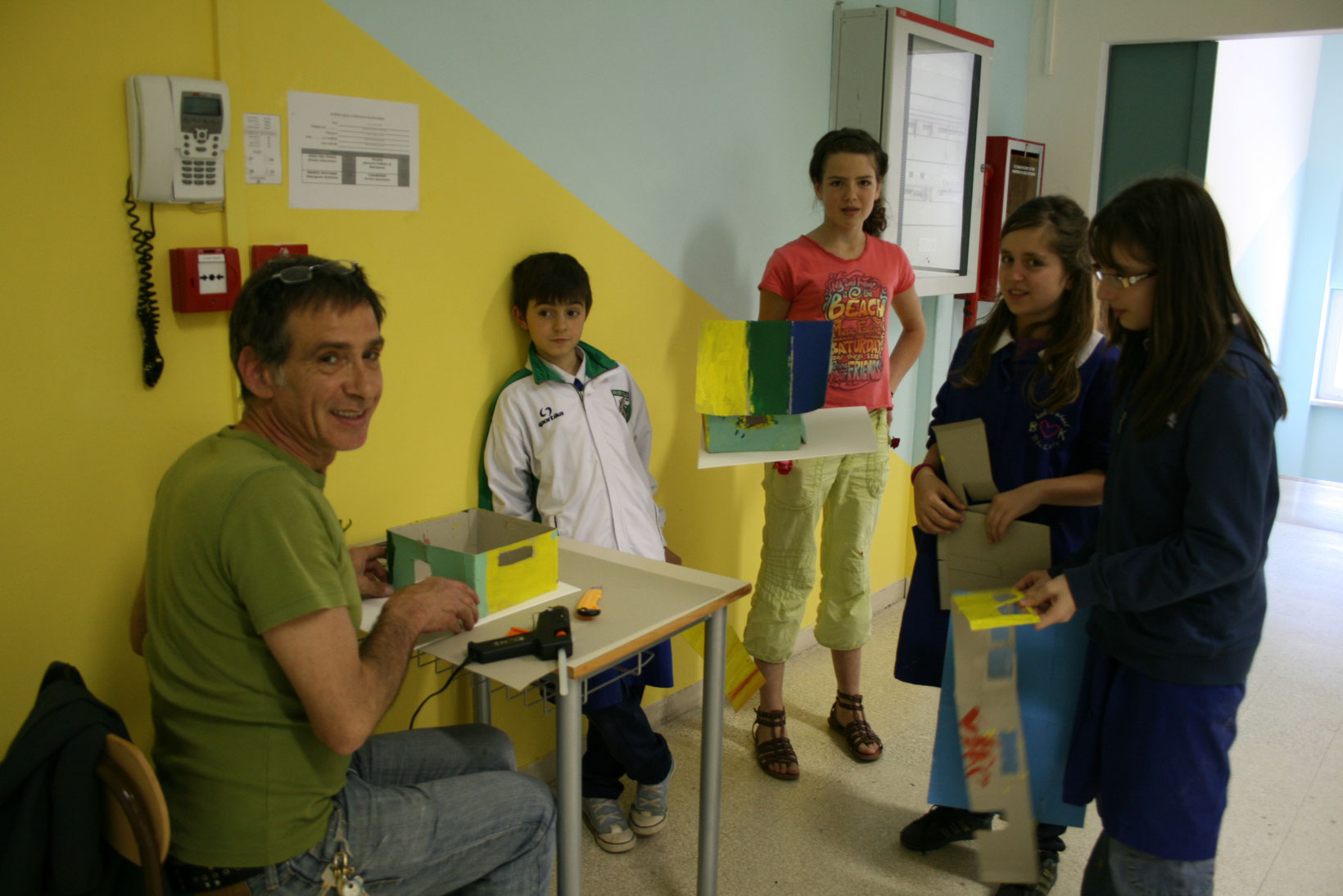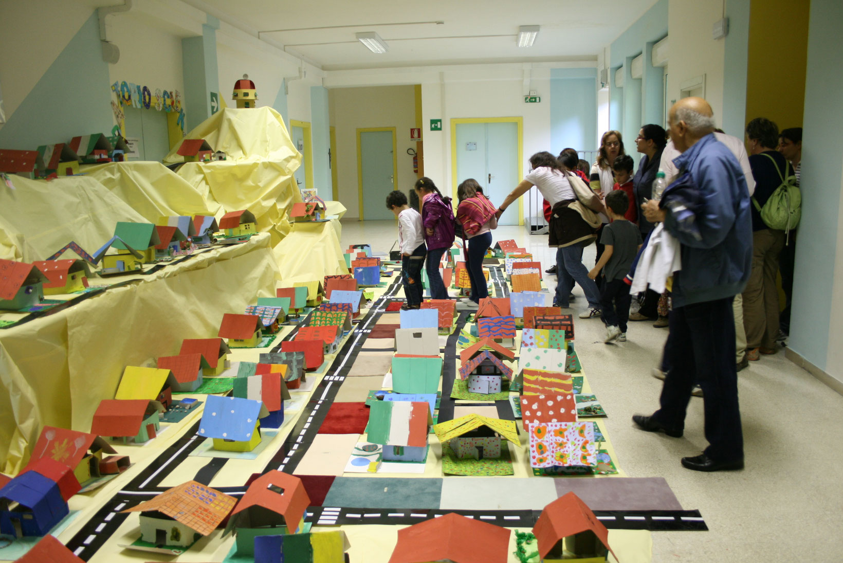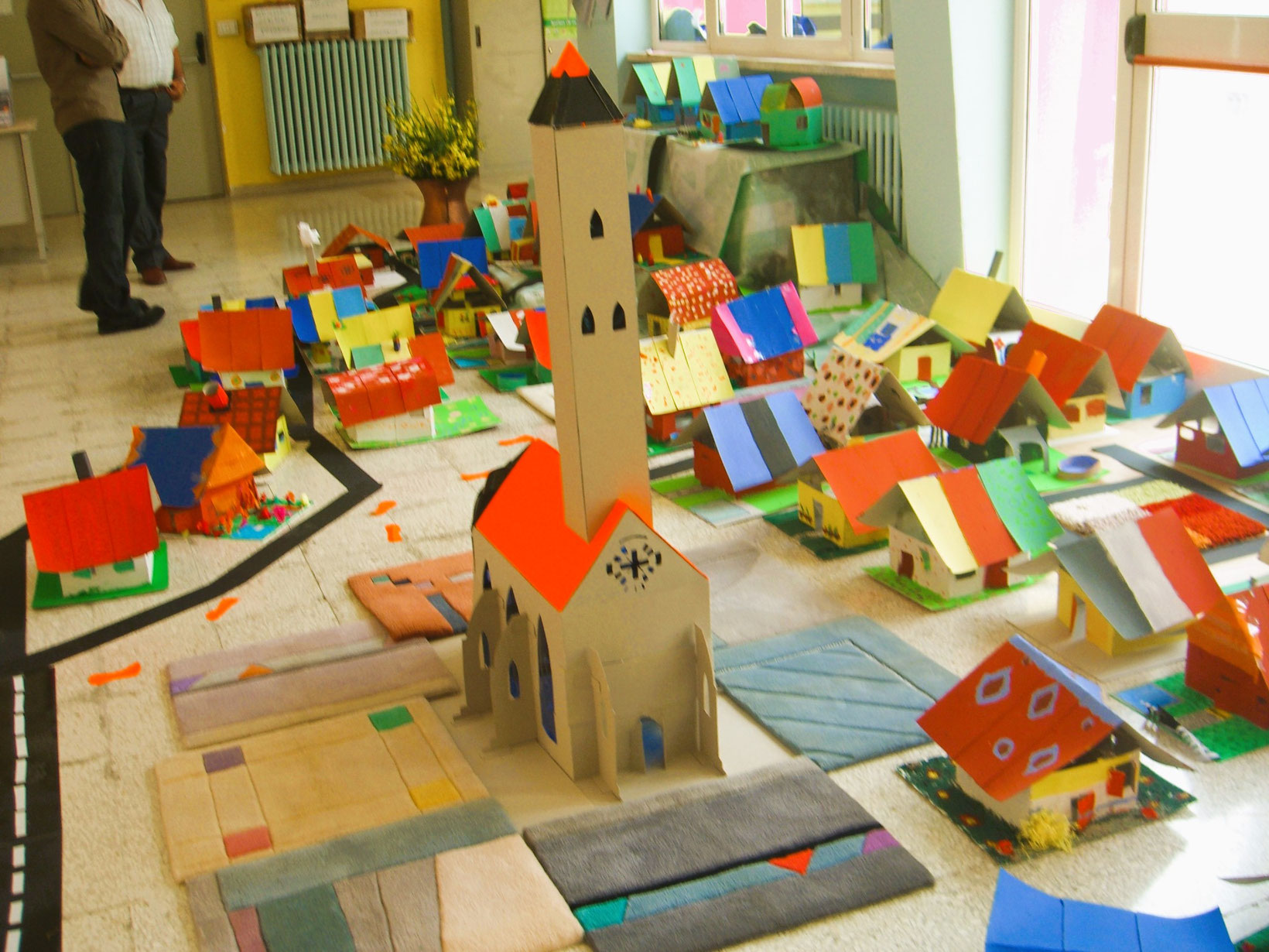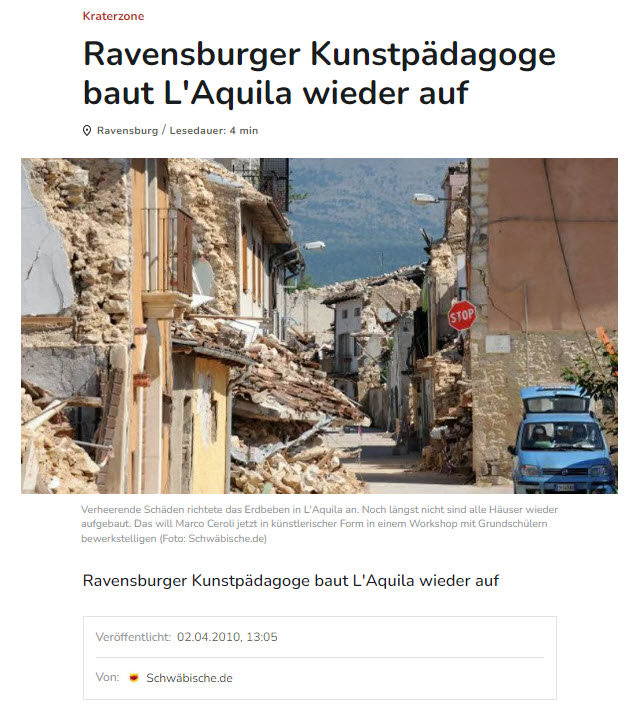 In Paganica arbeitete ich mit 400 Kindern in einer Grundschule: Mithilfe von Kartonagen-Material konnten sie ihre Visionen für die Zukunft ihrer zerstörten Stadt entwickeln.